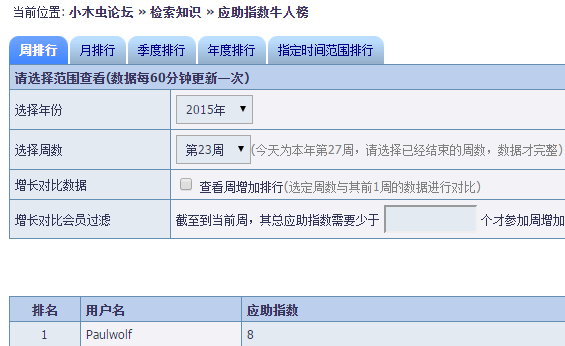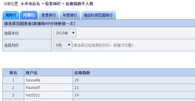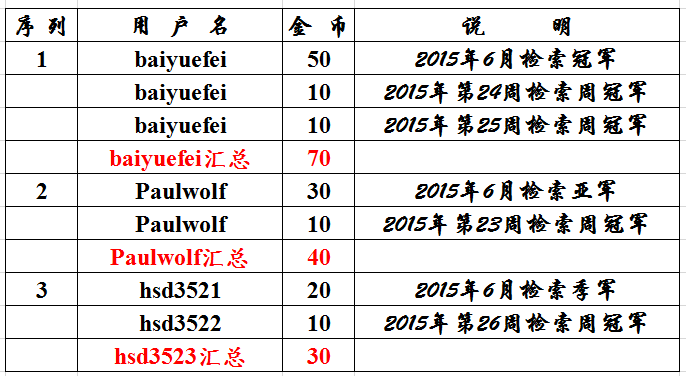 【检索知识】版2015年6月应助达人月冠军和周冠军获奖会员名单