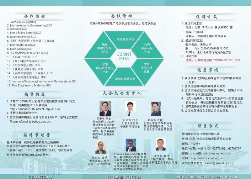 CSMNT2015大会报告阵容新鲜出炉,欢迎与会交流