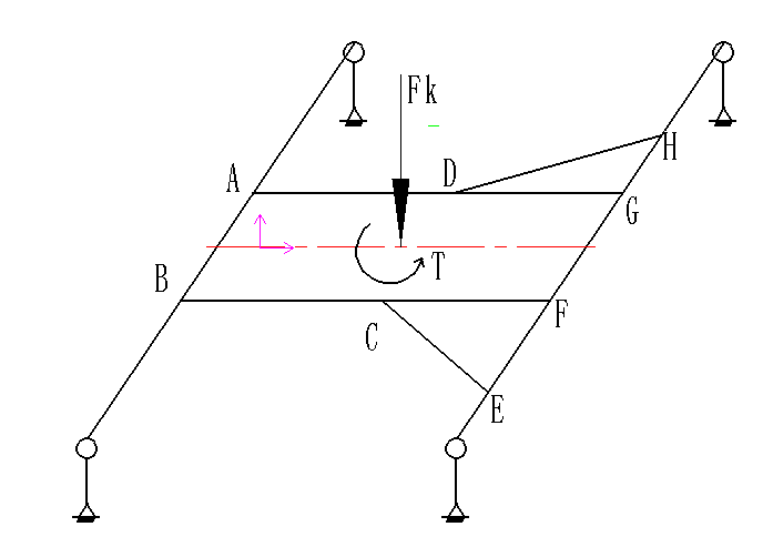 有一个关于结构力学的问题想请教各位大神,其中A,B,C,D,E,F,G,H为焊接点,底架的整体由方管组成,在受到Fk和扭矩T的情况下,分析底架的各截面的应力大小情况。请大神提供点思路,谢谢各位了。