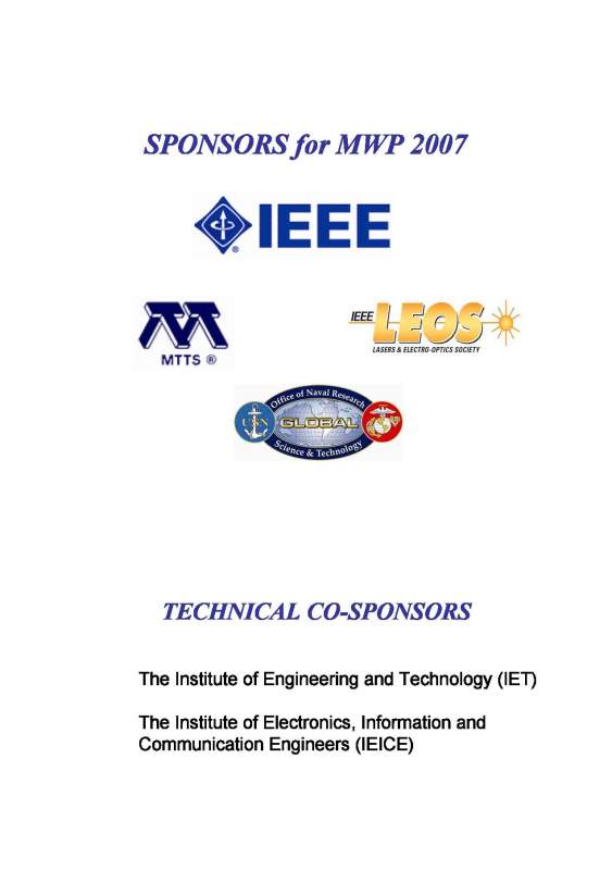 IEEE,全称是Institute of Electrical and Electronics Engineers MTTS,Microwave Theory and Techniques Society LEOS,Lasers and Electro-Optics Society ONR,Office of Naval Research |
