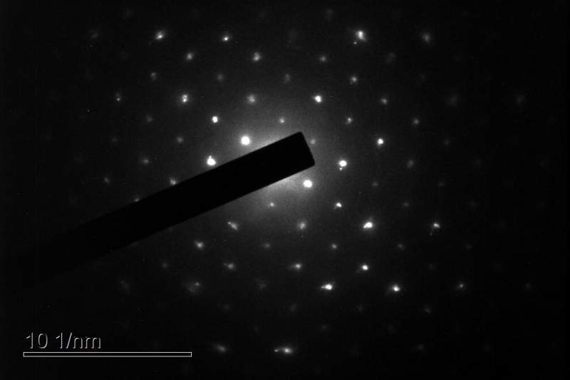这是得到的图片。这是什么图呢?为什么没有衍射环?而是点阵。倒易点阵吗?如何计算晶面间距?