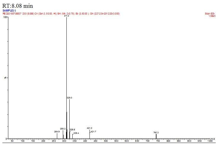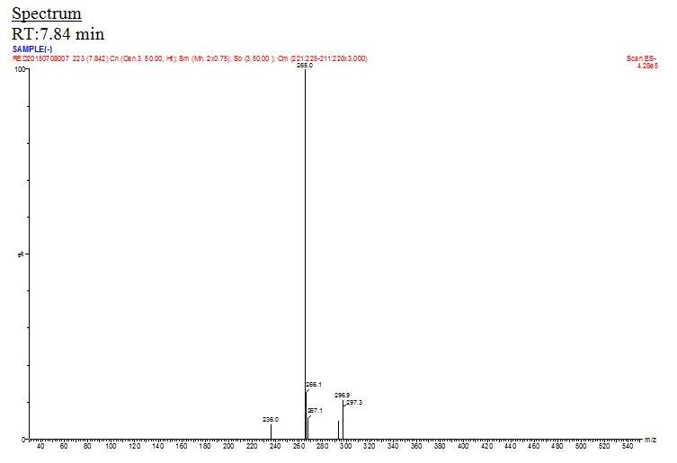 负离子模式一般是出M-H,假如丰度最高的那个是目标化合物的话,分别是266、312、294。但是必须要有空白来对比。