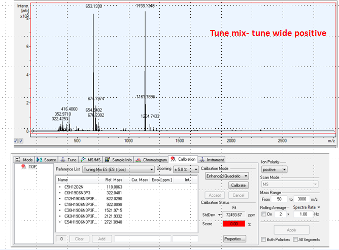 校正液是不是10mM的甲酸钠?你重新配下试试。然后你调节下喷雾针的位置,再试试。还有就是最好和工程师联系,问问可能的情况。先重新配个校正溶液试试吧 http://bbs.instrument.com.cn/shtml/20100927/2821737/ |
