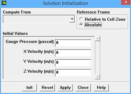 fluent利用jou初始化时如何选择reference-frame为absolute? ;/solve/initialize/reference-frame absolute /solve/initialize/initialize-flow |