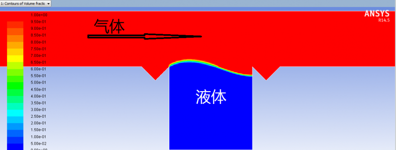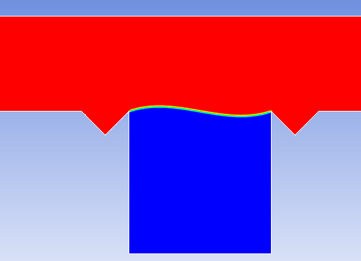 我想用VOF模型来研究气体吹过液体表面时,对液体界面波动和传热的影响。外界环境是常重力,我开始光加载的重力,想让液体先出来这个弯曲形状(图1),可计算出来却是图2的结果,右侧液体进去了,这是为什么? 图1 图2 |