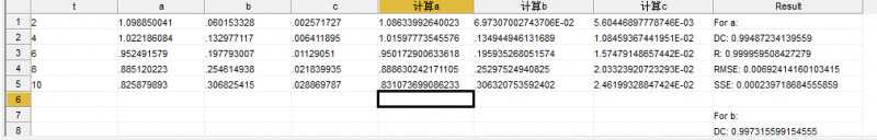 坐标显示0-4可能是他的作图功能不好,或不是正版软件,只看他的计算值就行了(计算值不是有,每时刻的计算值吗) 2 1.098850041 .060153328 .002571727 1.08633992640023 6.97307002743706E-02 5.60446897778746E-03 For a: 4 1.022186084 .132977117 .006411895 1.01597773545576 .134944946131689 1.08459367441951E-02 DC: 0.99487234139559 6 .952491579 .197793007 .01129051 .950172900633618 .195935268051574 1.57479148657442E-02 R: 0.999959508427279 8 .885120223 .254614938 .021839935 .888630242171105 .25297524940825 2.03323920723293E-02 RMSE: 0.00692414160103415 10 .825879893 .306825415 .028869787 .831073699086233 .306320753592402 2.46199328847424E-02 SSE: 0.000239718684555859 |