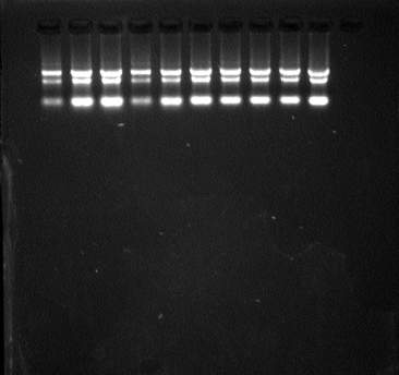 求教,如图从小鼠的MEF细胞(成纤维细胞)提取总RNA,跑琼脂糖电泳,5S这条这么亮是什么原因?是因为降解吗?还是因为小鼠和人的RNA比例不同? 20150720-RNA提取鉴定(PTEN+:1 2 3 4 uckp -:1 2 3 4 uckp).jpg |