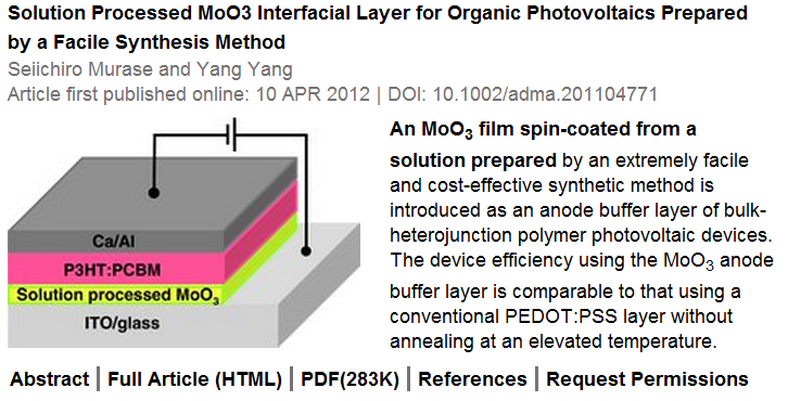 2012年11月2日AM上的一篇关于有机太阳能电池的文章