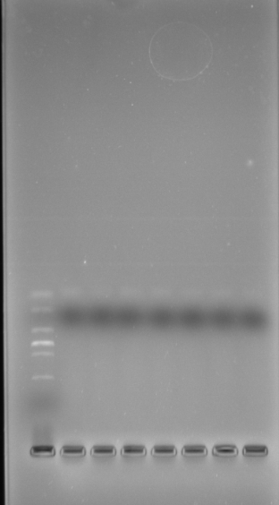 刚入门做pcr,我做的是h5禽流感的RT-PCR,如图,第一孔是marker,第二孔是阳性对照,第三孔是阴性对照,其余为待检样品,怎么最后跑完胶的结果是这样子的,求大神指导