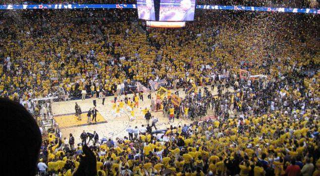 勇士主场获奖,球迷兴奋上台跳舞