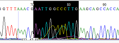我在拼线粒体基因,可是为什么这个位置测序得到的序列波峰有点儿奇怪呢?同一个位置我做了两次pcr测序(如图),都有个小乱峰,虽然没有影响,但是怎么那么巧合呢,而且p其他地方也没有这样哦,请各位大侠能否为小弟解答下呢? 123123123123.png 2121212.png |