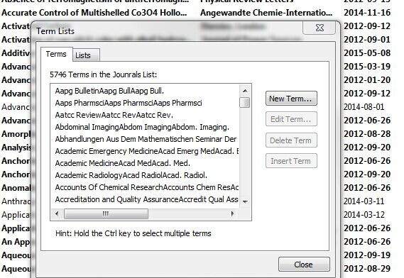 各位大侠,请教一个问题,我在设定期刊缩写里面,原本是journal full name/Abbreviation 1/Abbreviation 2/Abbreviation 3好几列的,现在没有了,全部都连接在一起,在style里面选择Abbreviation 1时候也没有用,各位大侠有碰到这种情况的不?应该怎么解决啊?