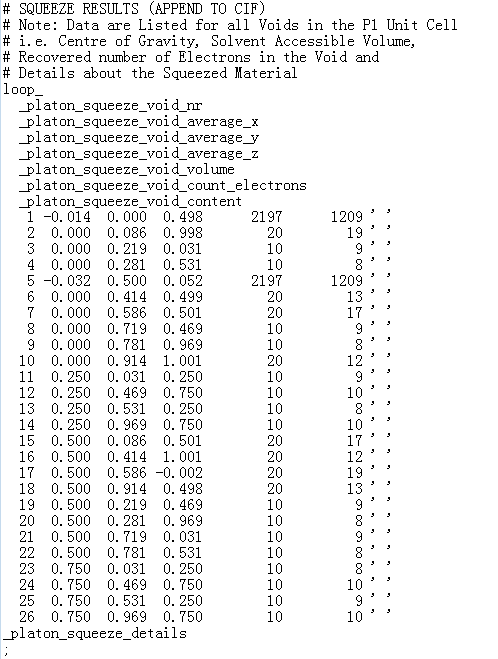 晶体有大量的溶剂分子存在,图片是squeeze结果,用的溶剂是甲醇和水怎么确定数量呢,求指点