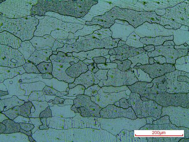 这是轧制后退火的金相组织,有几个问题想请教下:1.个人感觉退火的不够彻底,晶粒形状不够规整,大小晶粒混杂太多,不知道对不对?2.图片中晶界看着比较细、浅的晶粒,第一次腐蚀根本看不到,腐蚀了很长时间才能看到。那些晶粒是怎么回事?3.如果退火时间再长点,那些大的晶粒会不会被小晶粒吞噬掉一部分,整体的晶粒跟均匀细小? 200X-008.jpg |