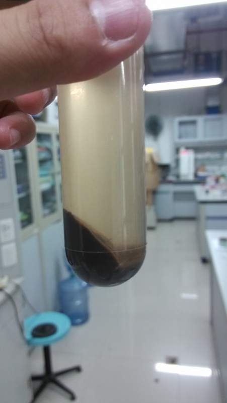 简单描述一下问题:GO的合成没问题,加过氧化氢后呈现亮黄色,静置一晚后全部沉淀,沉淀呈红棕色,上层清液淡棕色。倒掉上层清液,在加入去离子水,再静置,反复两次,之后烧杯内只有棕色沉淀和上层纯透明清液。去掉部分上层清液,弄浑后开始离心,离了十几次,清液PH确实是中性,但是样品还是如图的样子,求大神解释一下! IMG_20150724_143852.jpg |
