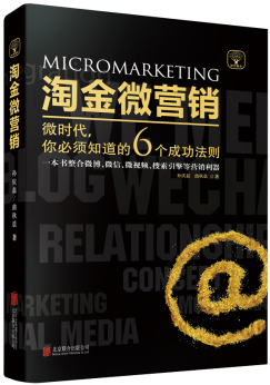 《淘金微营销》以案例说话,深入浅出地讲解了微营销的主要模式和推广技巧,介绍了微时代必须知道的6个法则,揭露了四两拨千斤的成功营销秘诀。 《淘金微营销》的最大特色是:不只关注理论,更专注于实战。 6630795086815840022.jpg |