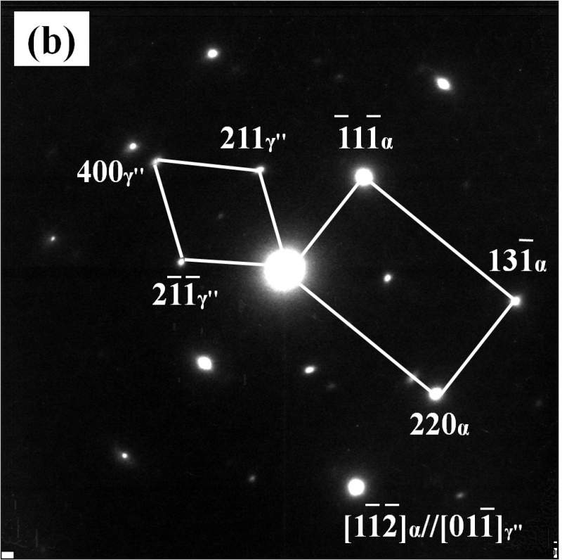 经常在SAED(选取电子衍射)图片分析中,看到析出相(第二相)与基体的位向关系:例如:(001)α // (001 )γ'',[110]α // [100 ]γ'',请问是怎么通过衍射照片算出这些晶面和晶向平行关系的??下面是两张衍射花样图,请高手帮我分析下晶面关系,谢谢!! Fig.2(b).jpg Fig.5(b).jpg Fig.6(d).jpg |