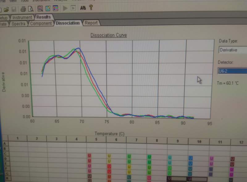 新手求助:刚做pcr,我用的是SYBR法,样本是提取》18bp的总RNA然后,加尾法反转录,PCR扩增CT值都在25-30之间,跑溶解曲线,结果目的产物溶解曲线的TM值都在65-70之间,TM值明显偏小,U6内参是试剂盒自带的,扩增出来也是一样,TM值70,扩增出来的应该不是目的产物,可能的原因是哪些 P50729-145710.jpg |