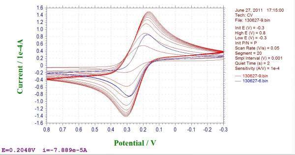 各位,循环伏安电流为零时的对应电压表示什么?有文章说:“由于电流为0 时没有自由电子的跃迁,此时的电 压即为发生氧化还原反应的临界电位,即导带电位。”那我有个疑问,因为循环伏安一般是闭合曲线,电流为零时会对应两个电压值,这两个电压值哪个代表导带电位?我的理解是相交于氧化方向的点对应的是导带电位。烦请明白人,给予指导!多谢! |
