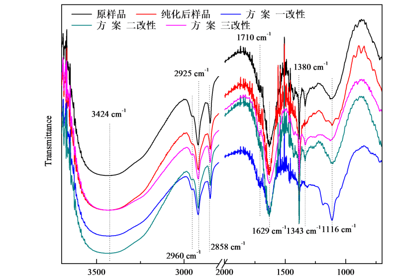 请大家帮我分析一下不同处理方法得到的纳米金刚石的红外谱图。我看懵了~~~~~