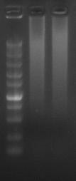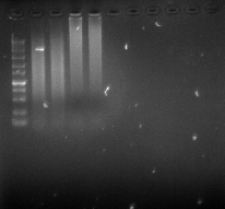 我扩增一个gDNA,做了好多次都成了下面这两个图这种类型只有拖尾没有条带,换了新的酶,换了新的引物,温度等设置及PCR仪我都使用和原先能够做出来的cDNA的PCR一样的,就是P不出来,求帮忙分析。
