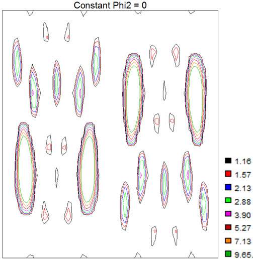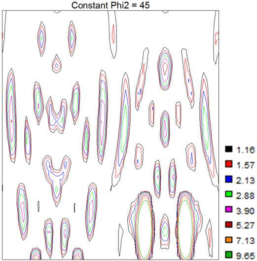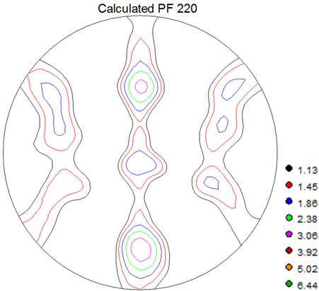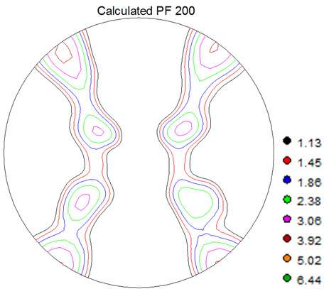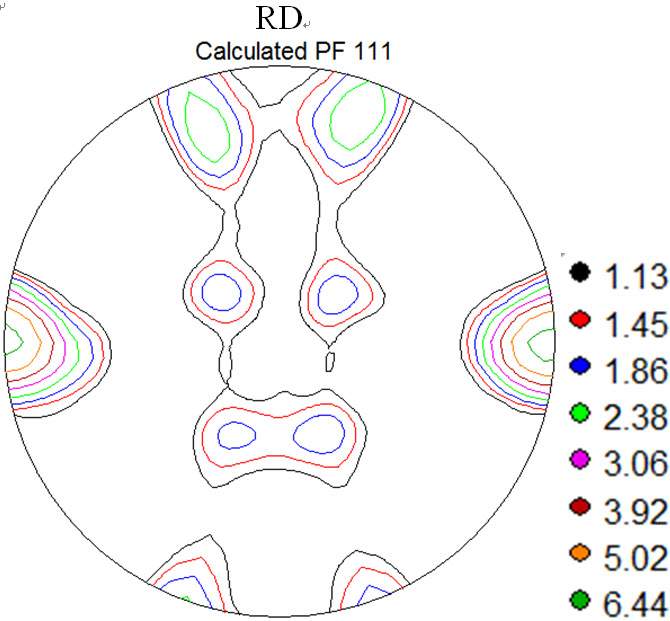 图示为某种挤压铝合金的的(111)极图,挤压面为投影面,挤压方向为图中RD方向。