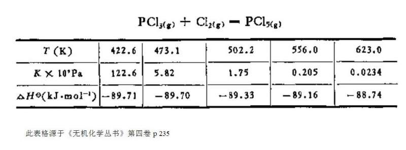 求助三氯化磷和氯气生成五氯化磷的相关热力学性质的数据或资料已有1人参与