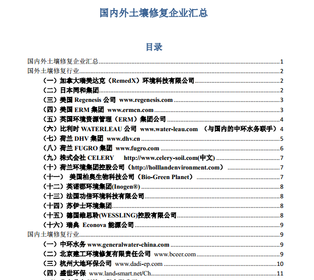 ★★★★★污染场地修复入门篇(8)土壤修复国内外知名企业汇总及简介《无重复》