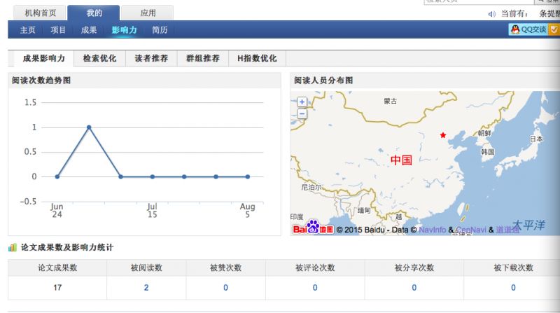 怎么通过“成果在线”看自己的哪篇论文被阅读过?哪几篇没有被阅读过? 我怎么只发现被阅读的次数,但是找不到被阅读的论文是哪几篇。 |