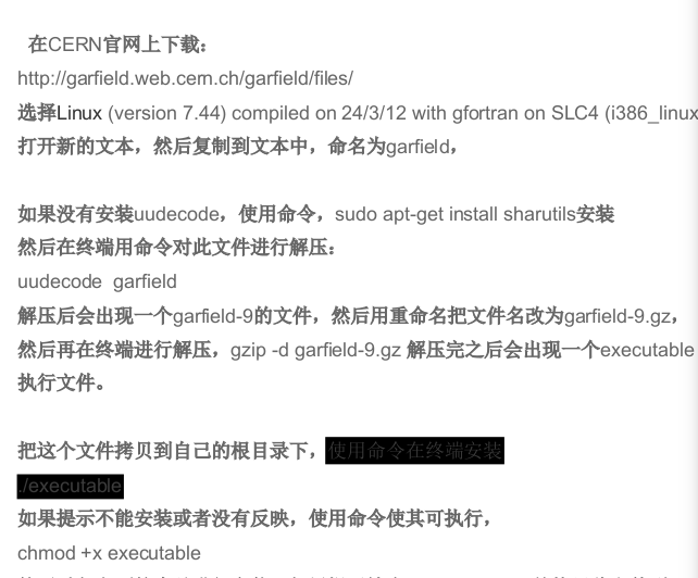 Garfield是计算电子离子对在漂移过程中,探测器极板上产生的感应电流,也可以计算工作气体复合率,离子对漂移速度等信息。 我是按照http://wangyillang.blog.163.com/ ... 382201231714836436/指南做的,见下图1,做到黑色部分发现不能进行,见图2,然后就一直困扰着我。 图 1 garfield安装步骤(见附件) 图 2 中间出现问题(见附件) 本人不熟练使用linux,希望得到解答。万分感激!. 图 1 garfield安装步骤.png 图 2 中间出现问题.png |
