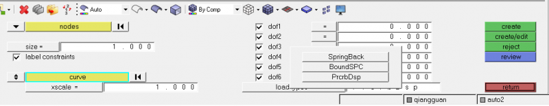 最近用hypermesh做LS-Dyna的分析,在添加约束方面用LS-Dyna计算一直出错,所以我想问一下在加约束的时候自由度方面应该怎样设置? (3)最后一个问题,如果想设置所选的节点在x负方向运动,是不是将dof1中设为-1? |