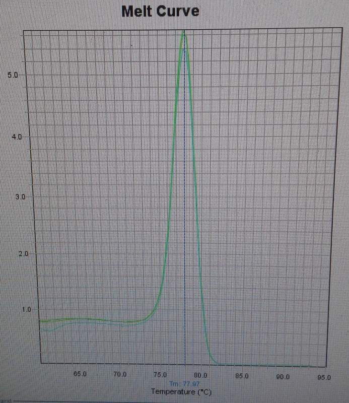 小弟我刚开始做qPCR,目的基因的溶解曲线样子看着还好,也是单峰,但是Tm在78℃左右,听大家说溶解曲线的Tm要高于80℃,不知道我的这个扩增到底正不正确,结果能不能用,如不正确,请问是什么问题?要如何改进? IMG_20150805_210506.jpg |