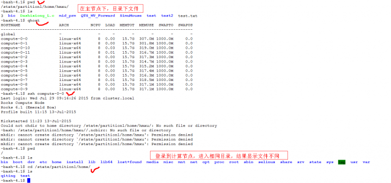 问题如图所示, 主节点的/state/partition1/home是通过NFS共享到每个计算节点的,现在,在计算节点下无法看到/state/partition1/home的内容,请问大侠们怎么办? 系统是Rocks 6.1 123.png catexports.png |