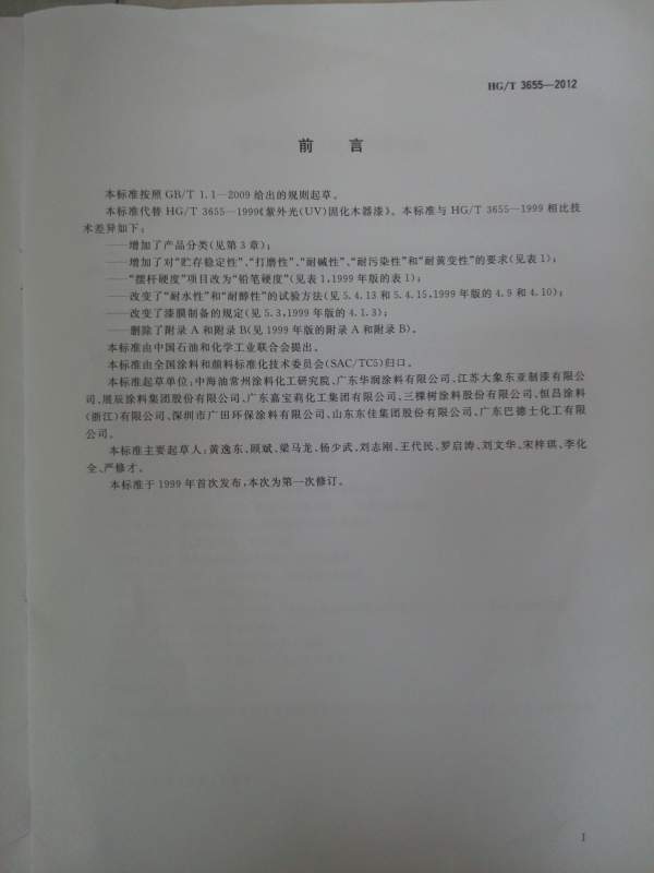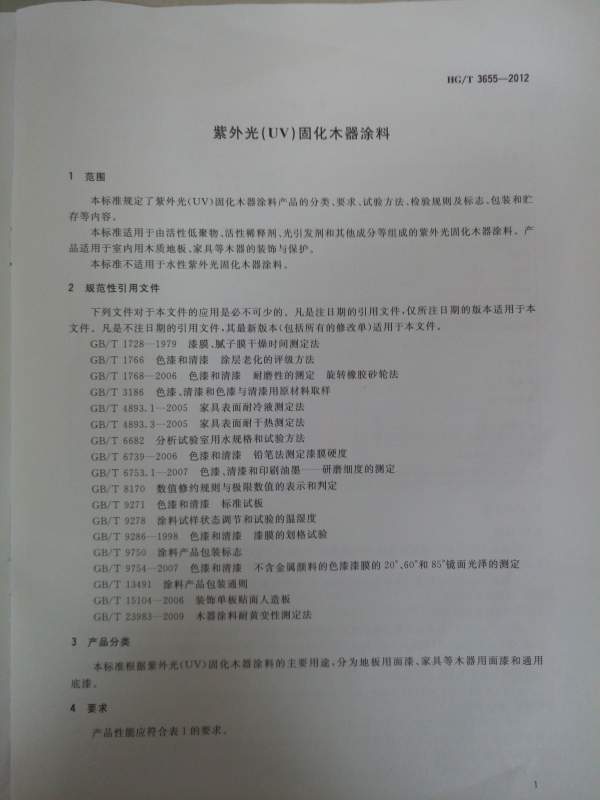 UV固化木器漆国标