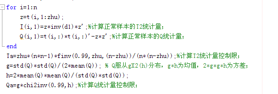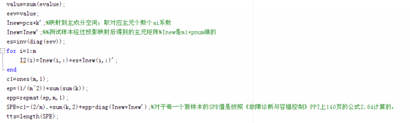 最近在用KPCA做故障诊断,看了好多版本的代码,其中出入最多的就是关于SPE统计量计算的问题,好多不同种类的公式,不知道哪个公式是正确的。 在文献上提供的公式一般就是我上传的那个图片上的公式,但是在程序中的公式也对不上号啊。有没有做这方面的同学,帮帮忙。提供一个可靠的公式,计算SPE统计量的。指点指点。 截图00.png |