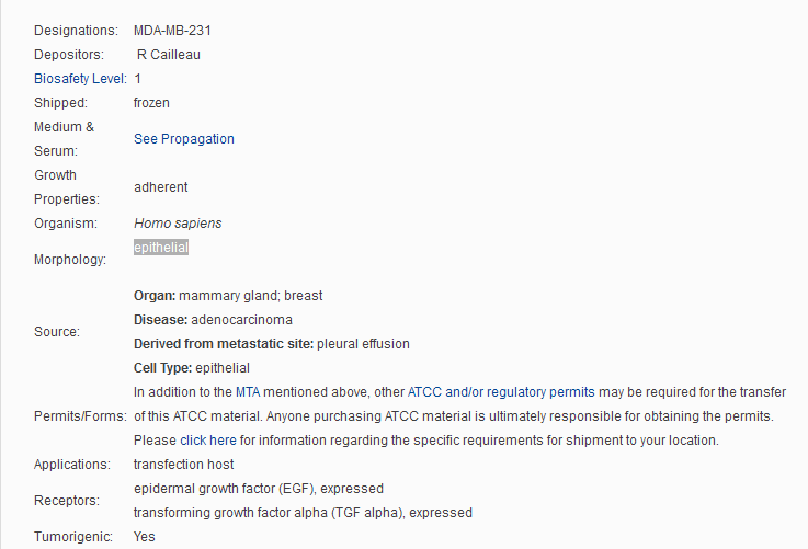 ATCC上的epitheilal只是说这个细胞的外观。你既然是做EMT,231细胞是M型的代表,两个都没错