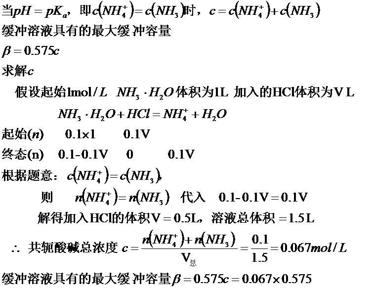 1mol/l 氨水溶液中加入相同浓度的盐酸溶液 所得缓冲液的最大缓冲容量!