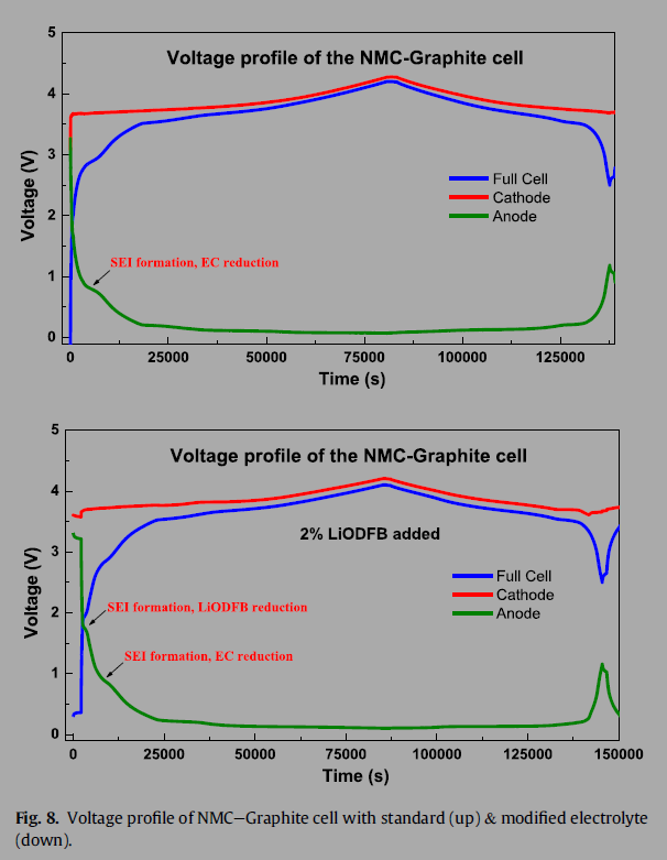 我的理解是这样的,还请高手指导: 化成前一般电压为零点几伏特 比如LiCoO2/石墨电池,刚装好电池未化成,LiCoO2 vs锂约等于3V,石墨vs锂约等于3V,合起来就相当于0V,随着化成,LiCoO2转变为LixCoO2(x<1),相对于锂的电位大于3V,而石墨不断嵌锂生成LixC6(x<1),产物相对于锂的电位低于3V,叠起来就有了大于3V的电压差了,而对于像LiFePO4这样的材料,嵌脱锂的电位很稳定,其锂离子的脱嵌只在3.4V左右进行,故会有一个很平的充放电平台 理论上嵌锂和脱锂电位是一致的,但是由于极化和不可逆相变使得电位分离 氧化还原电位 就是前脱锂电位,随着锂离子的嵌入和脱出伴随着过渡金属氧化物的价态变化。 |