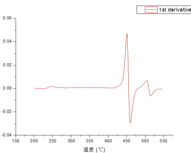 请问大家,我这个DSC曲线,找Tg和Tx点是分别在220℃和420℃吗??用Origin对DSC曲线求导,在200多度处有一个包包?不知道找对没?