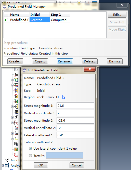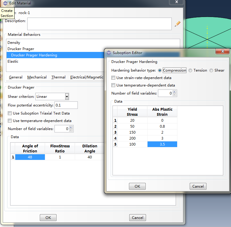 ABAQUS中岩石的粘聚力、和抗拉强度在哪里设定