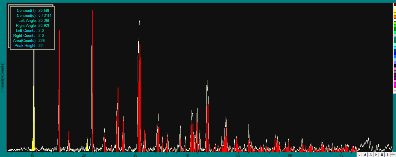 反应物为BaCl2, NaOH, H3BO3, EDTA-2Na得到了Ba2(B5O9)Cl•(H2O)0.5,但是在10°和20.5°那里有两个比较明显的未知峰,不知有没有大神帮忙分析一下。谢谢 ~RQFP)F21IH@T8]`D8Z(U6F.png |