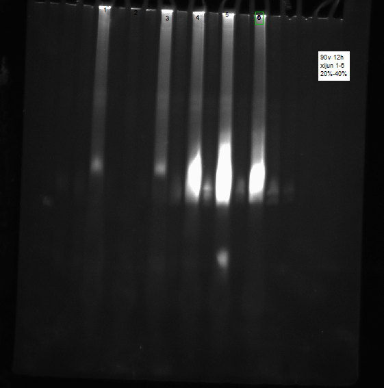 根据你的描述和从图上看,主要存在两个问题,一是胶不合适,主要是不同浓度变性剂的胶没有混成梯度,而是电泳条件不合适。所以建议如下,1,如果变性剂是用的尿素,请用30%和60%的胶,而且要事先用红蓝胶模拟配胶确保变性梯度均匀,2,请用,105伏电压10小时电泳。同时注意两个小问题,1,保证电泳液恒温,如果电泳4小时后电泳液温度上升太高会出现彗星泳道,2,微量上样器点样是不飘不穿无气泡。当然我以上所说是认为你pcr的DNA是没问题的,但看你的pcr结果我还是不放心,建议下次加对照。上述为鄙人拙见,如有不妥之处请批评指正。 [ 发自手机版 http://muchong.com/3g ] |