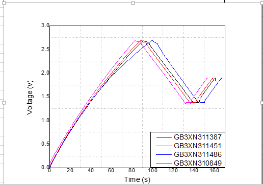 从上传的充放电曲线图中有4颗超电充放的曲线,但是一致性不是太好。 按理比较好一点的充放电曲线应该呈线性的直线,这几条当中从0V充到2.7V时有的充电曲线有弧度导致充电时间比另外的长,或者说有的可能充电时间短一点。 这个主要是什么情况造成的呢?或者受什么影响? 充放电.png |
