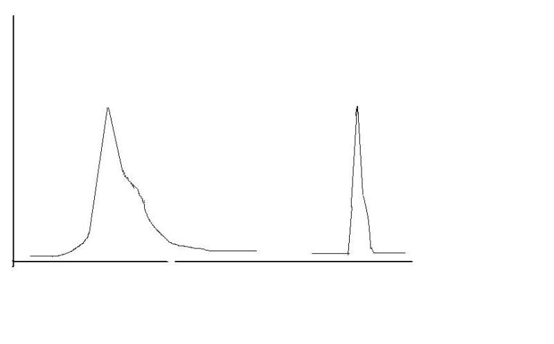 液相色谱纯物质峰鼓包拖尾,用质谱确定峰鼓包处不是其他物质,求解决方法~(走基线是很小很小的规则的波浪型,基本等同于直线) 自己手画,因为原图不放大看不太明显,放大后就是左边的样子。。。。 未命名.JPG |
