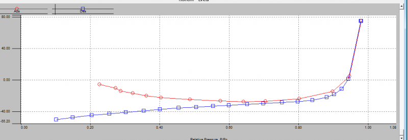 参考文献上说该材料比表面在7左右,为无孔材料,该样品极易吸潮,我测BET加入样品质量为0.5g,但我测BET出现这样诡异的图,实在无法解释,求大神指出原因,不甚感谢。 搜狗截图15年08月13日2206_1.png |