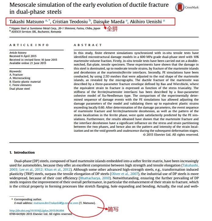 用elsevier的preprint模板中\ead来设定email,它可以在email后自动添加对应的人,例如 \author[...]{David~Robinson} \ead{david@sjtu.edu.cn} footnote中显示出来的效果是:david@sjtu.edu.cn(David Robinson); 如何能让显示出来的author姓名除last name外都是首字母简写, 即david@sjtu.edu.cn(D. Robinson)? |