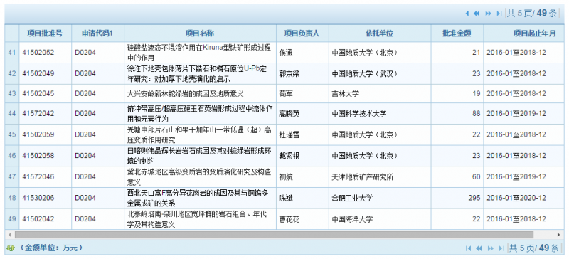 2015国家自然科学基金项目评审结果-D0204-岩石学