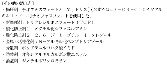极压剂:作为硫代磷酸盐,使用tris-[2,4-C9~C10异烷基苯酚]硫代磷酸。