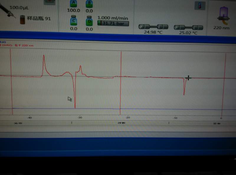 液相出现负峰 流动相为磷酸盐和水 50:50,进了一针纯水 在10分钟左右 出现负峰 已有3人参与