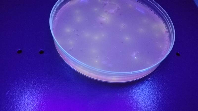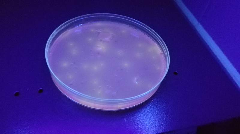 寻大神求助~~~ 在做大肠杆菌实验是,使用VRBA,VRBA-MUG浇平板后,放在培养箱里培养,但因疏忽,培养了48小时,拿出来后在366nm的紫外灯下,黑暗环境下,观察到发黄色荧光的物质,不知是什么???求大神解答,在线等~~~~~~ IMG_20150821_142756.jpg IMG_20150821_143357.jpg IMG_20150821_142806.jpg |